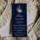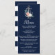 Cette carte de menu d'été à ancre fleurie marine est parfaite pour un mariage à thème nautique. Le design présente un beau bouquet de fleurs d'été blanches et roses rousses, enroulé autour d'une ancre de bateau aquarelle. Ce menu peut être utilisé pour une réception de mariage, un dîner de répétition ou tout événement.