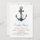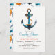 Ancres nautiques couples douche / wedding shower invitation. L'Invitation est doté d'une ancre bleue et d'un motif de tortue de mer orange.