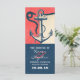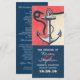 Ancien programme de mariage nautique ancre pour mariage tropical sur la plage. Couleurs du programme de mariage de la plage principale : marine et corail