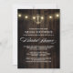 Ancre nautique rustique Invitations de douche nuptiale - dispose d'une grange rustique ou arrière - plan en bois avec des lampes à cordes et une élégante ancre en or. Le dos est équipé du même arrière - plan avec des lampes à cordes.