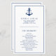 Programme de mariage nautique avec ancre bleu marine avec votre monogramme de chaque côté, sur un arrière - plan blanc. Le front a vos cérémonies et l'arrière a votre fête de mariage. Un design simple mais élégant, parfait pour une fête sur le thème de la plage en été. Ces programmes de mariage bon marché sont imprimés sur des feuilles de papier pour une option économique.