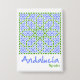 Capture the spirit of Andalucia with this Spanish tile design. Blue and green geometric patterns reflect the Alhambra's Moorish art. This makes a unique souvenir for those who love southern Spain.