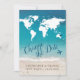 Die neu gestaltete Destination Beach Wedding Announcement Card mit Weltkarte und beweglicher Herzstandanzeige mit türkisblauem Ozean- und Sandstrand. Verwenden Sie diese Karte, um neue Reisedaten für ein aufgeschobenes oder neues Datum oder einen neuen Ort für Ihre Reise Thema Hochzeit in Urlaubsort, die wegen Reisebeschränkungen oder unvorhergesehenen Umständen verzögert wurde, die Ihre Hochzeitspläne ändern könnten, zu senden. Verwenden Sie das Template Editor Design Tool, um das Herz an eine beliebige Stelle auf der Karte zu verschieben und Textfarben und Schriftart zu ändern. Sie können auch das Herz und das Flugzeug entfernen, wenn Sie möchten, dass eine einfachere, am Strand inspiriert Reise die Dattelkarte Design ändern.
