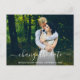 Moderne trendige Schrift ändern das Datum Hochzeitspause Neue Hochzeitstermin Paar Foto Postkarte