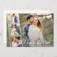 Schicken Sie diese stilvolle Karte, wenn Sie eine Änderung der Hochzeitspläne haben. Auf der Vorderseite finden Sie Ihr bevorzugtes horizontales Foto und 3 kleinere quadratische Fotos mit einem hübschen Weißtextüberlagerungsrahmen. Die Rückseite bietet alle neuen Details. Einfach und modern, aber stilvoll und elegant - koordiniert wunderbar mit so vielen heutigen Hochzeitstilen.