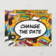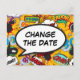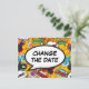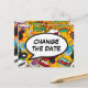 Personalisieren Sie mit Ihren Namen und Details, um die Änderung des Datums Ihrer besonderen Veranstaltung anzukündigen. Comic Buch Pop Kunst themed modern, Spaß Retro-Design, perfekt für Hochzeiten, Brautpartys, Babyduschen, Taufen, Verlobungen, Jubiläumsfeiern, Abschlüsse, Geburtstagsparty und andere besondere Veranstaltungen das ganze Jahr über! Ein cooles, trendiges und unterhaltsames Design, das den wackeligen Zap Pow in den Tag legt. Entwickelt von Thisisnotme©