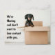 Umzug der Adresskarte, mit einem niedlichen Foto eines Schwarz-Braun-Dackel-Hundes in einer Kartonbox. Personalisieren Sie den fett gedruckten Text, um zu lesen, was Sie gewollt haben.