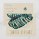 Tan und Green Big Mod Monstera Leaf Ändern Sie die Datumskarte mit lustiger Retro-Mod-Typografie, die für eine Hochzeit in Urlaubsort am Strand oder auf der Insel entworfen wurde, die aus irgendeinem Grund neu geplant, verschoben oder umgestellt wird. Der Text ist vollständig editierbar, um so viel oder wenig zu erklären, wie Sie den Gast im Moment wissen müssen. Karo im Zazzle Shop für die Paper Trauben Destinations für eine Vielzahl von anderen Hochzeitsaufschiebungen.