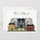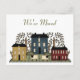 Farbenfrohe Landkunst, primitive Kunstwerke von Häusern, Bäumen und Schafen. Wir haben uns in matt grünem Text oben auf der Postkarte bewegt. Passen Sie alle Textvorder- und -rückseiten an, um Ihre Anforderungen zu Anzug zu bringen.