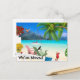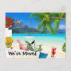 Watercolor Änderung der Adresse Postkarte mit Haus am Strand.