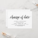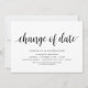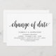 Ändern Sie die Datumskarte. Dies ist die Hochzeitsfeier Einladung Rescheduled (verschoben / verschoben) Karte (Wechsel des Datums), in der modernen minimalen einfachen Design-Thema, Schwarz Schriftart.