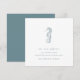 Mit diesen eleganten Küstenstreifen-Ansichtskarten, die eine Vintag geätzte Seepferd-Illustration in aquamarinem Blau enthalten, kündigen Sie Ihre neue Adresse an. Personalisieren Sie Ihren Namen, Ihre Adresse und Ihre Ankündigung im klassischen Block und kursiv. Wir Liebe das Felt Ecru Papier für eine luxuriöse, erhöhte Oberfläche.