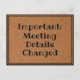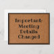 Diese Postkarte eignet sich hervorragend, um die Leute lassen, dass sich die Details des Treffens ändern. Sie werden den Wechsel der Details schätzen. Es ist eine nette Touch, um Ihr Geschäft reibungslos behalten.