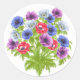 Hübsche französische Anemones de Caen Garden Blume auf einem farbenfrohen Aufkleber von Two Purring Cats Studio. Ein großartiger Akzent für Geschenke oder Schulbücher.
