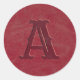 Dieser personalisierte rustikale Rundaufkleber mit einem Imitat roten Ledertextur Hintergrund und einem mit Monogramm Initial für Sie personalisieren. Entworfen von dem weltbekannten Künstler ©Tim Coffey.