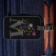 Das Design enthält Monogram plus Blume in einem Blumendesign. Ursprünglich ist der Buchstabe M. Black Luggage Tag.