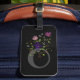 Das Design enthält Monogram plus Blume in einem Blumendesign. Ursprünglich ist der Buchstabe O. Black Luggage Tag.