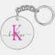 Dieser moderne Schlüsselanhänger mit Ihrem Vornamen in einem trendigen Script-Schriftart in schwarz und Ihr erster Einstieg in einen modernen Cap-Schriftart in heißen Rosa ist perfekt für Ihre Schlüssel.
