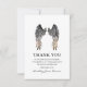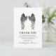Carte de remerciements funéraire personnalisée à envoyer à des amis et à la famille qui vous ont montré l'amour et la bonté pendant votre deuil. Doté d'un arrière - plan blanc classique, d'élégantes ailes d'ange, et d'une note de remerciement spéciale qui peut être customisé. Au verso, vous pouvez avoir une sélection de couleurs différentes ou changer à une couleur de votre choix.