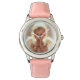 Kinderuhr aus Edelstahl mit rosa Lederarmband