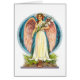 un ange rétro avec des sandales en dentelle, une robe de fleur de lys, un bandeau de fleurs, et tenant un bouquet de lys dans ses mains et ses bras, derrière l'ange est un grand disque bleu avec des plantes, elle a de grandes ailes roses et regarde directement l'observateur.ange avec une longue robe en pétales de fleurs de lys blancs qui regarde doucement avec les pieds ensemble sur un chemin d'herbe et portant des sandles sandles sandales romanes . belle aquarelle vintage couleur de l'ange de pâques avec les fleurs de pâques traditionnelles. pastel pastels bleu, blanc et couleur rose.