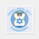 Die Papierservietten aus personalisiertem Party sind mit einem Engel versehen, der die Flagge Israels trägt und in der Mitte eines digital kreierten, strukturierten, blauen Kreises fliegt. Die Hauptfarben dieses Designs sind blau und weiß, wobei man die Hanukah im Hinterkopf hat. Blaue Briefe lesen ISRAELI ANGEL und machen einen Platz für das Jahr und einen Namen, sodass Sie ein individuelles Geschenk erstellen oder Ihr Aussehen personalisieren können. Hintergrund sind weiße quadratische Quadrate.