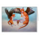 Zwei tabby Engel mit Falkenflügeln spielen mit einer Maus durch die Wolken jagen.
