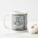 Un ange fantaisiste orne cette tasse dans un décor d'écran. Les étoiles et la musique sont des motifs répétés qui ajoutent au charme. Un cadeau parfait.