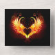 Engel Feuerherz mit flammenden Flügeln auf schwarzem Hintergrund.