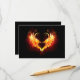 Engel Feuerherz mit flammenden Flügeln auf schwarzem Hintergrund.