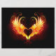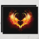 Engel Feuerherz mit flammenden Flügeln auf schwarzem Hintergrund.