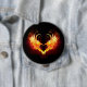 Engel Feuerherz mit flammenden Flügeln auf schwarzem Hintergrund.