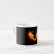 Engel Feuerherz mit flammenden Flügeln auf schwarzem Hintergrund.