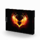 Engel Feuerherz mit flammenden Flügeln auf schwarzem Hintergrund.