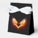 Engel Feuerherz mit flammenden Flügeln auf schwarzem Hintergrund.