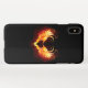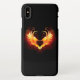 Engel Feuerherz mit flammenden Flügeln auf schwarzem Hintergrund.