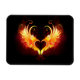 Engel Feuerherz mit flammenden Flügeln auf schwarzem Hintergrund.