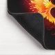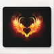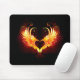 Engel Feuerherz mit flammenden Flügeln auf schwarzem Hintergrund.