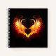 Engel Feuerherz mit flammenden Flügeln auf schwarzem Hintergrund.