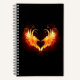 Engel Feuerherz mit flammenden Flügeln auf schwarzem Hintergrund.