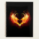 Engel Feuerherz mit flammenden Flügeln auf schwarzem Hintergrund.