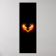 Engel Feuerherz mit flammenden Flügeln auf schwarzem Hintergrund.