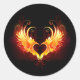 Engel Feuerherz mit flammenden Flügeln auf schwarzem Hintergrund.