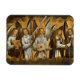 Dieses Kunstwerk zeigt eines der Fragmente eines religiösen Polyptychts von Hans Memling. Dies wäre von der links Seite der Originalmalerei. 15. Jahrhundert schönes Kunstbild von fünf Engeln spielen Musikinstrumente.