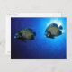 Tierkarte mit 2 schönen französischen Engelfischen. Der französische Engelfisch (Pomacanthus paru) ist ein großer Engelfisch der Familie Pomacanthidae, der sich im Western Atlantik von New York und den Bahamas bis Brasilien befindet, und auch der Golf von Mexiko und der Karibik, einschließlich der Antillen, Roatan, und der Ostatlantik von der Insel Ascension und St. Paul's Rocks, in Tiefen von 2 bis 10000000000 m. Der französische Angelfisch ist in flachen Riffen üblich, tritt in der Regel paarweise in der Nähe von Fans des Meeres.