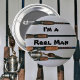 Der Fotoknopf von Reel Man ist perfekt für Outdoor Sportler oder Fischer mit alten Angelroten und Rollen mit einem lustigen Wortspiel. Dieses Bild ist eine originale Sportgerätefotografie von JLW_Fotografie.
