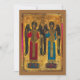 mittelalterliche Ikonenmalerei von zwei Engeln, michael und gabriel auf Engel in rotem Mantel, und die andere in einem roten Mantel, verzierte goldene Schattierungen überquerten die Brust und goldene verzierte Schnitte am Ende der Garderobe, dunkelbraune Flügel, halten ein Personal und halten ein rundes Objekt in ihren Händen, mit dem Hintergrund gefüllt mit metallischem goldenen Blatt glänzenden und einem leuchtenden und leuchtenden mittelalterlichen und einem mittelalterlichen christlichen Bild. blau, rot und gold mit einem Mustereffekt.
