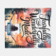 Eine Aquarellbild einer Frau mit offenen Armen, die einem Sonnenuntergang entgegensieht. Der Himmel ist mit warmen Orangen, Rot und Pfeffen bemalt. Die Frau hat langes Haar und trägt ein weißes Kleid. Der Hintergrund enthält Bäume und eine Horizontlinie. Der Text "Fearful and Wonderful Made" ist in einem fließenden, eleganten, kühlen Kalligraphie-Stil geschrieben, personalisiert mit Namen.