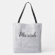 Ein mit Monogramm Design für eine schwarz-graue Tasche. Ein Muster personalisierter Namen verschiedener Schriftart-Stile, mit einem großen Anfangswert