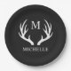 Angepasstes Monogramm mit Schwarz-weißem Hirschant Pappteller